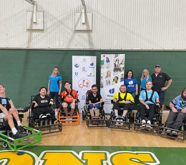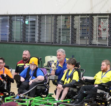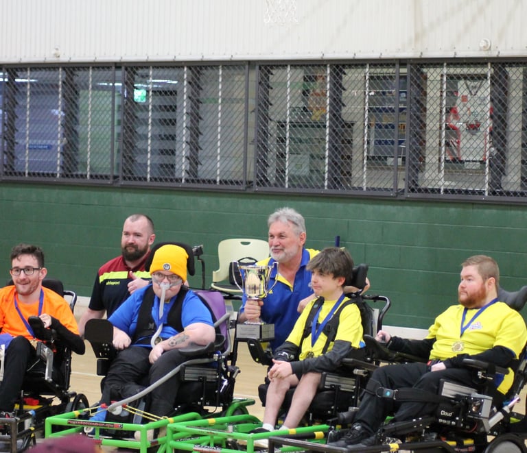 Powerchair football can be played by people of all ages and all genders. As long as you can drive a powerchair safely, you can come have a go. You don’t even need your own sports powerchair to get involved, as we have loan powerchairs. Spectators are always welcome, and we’re always looking for volunteers.