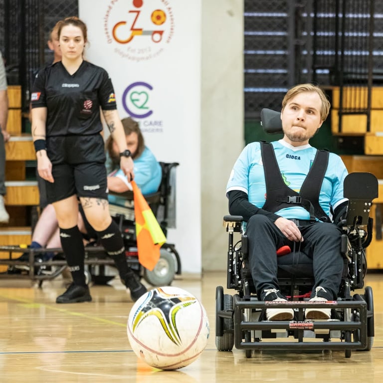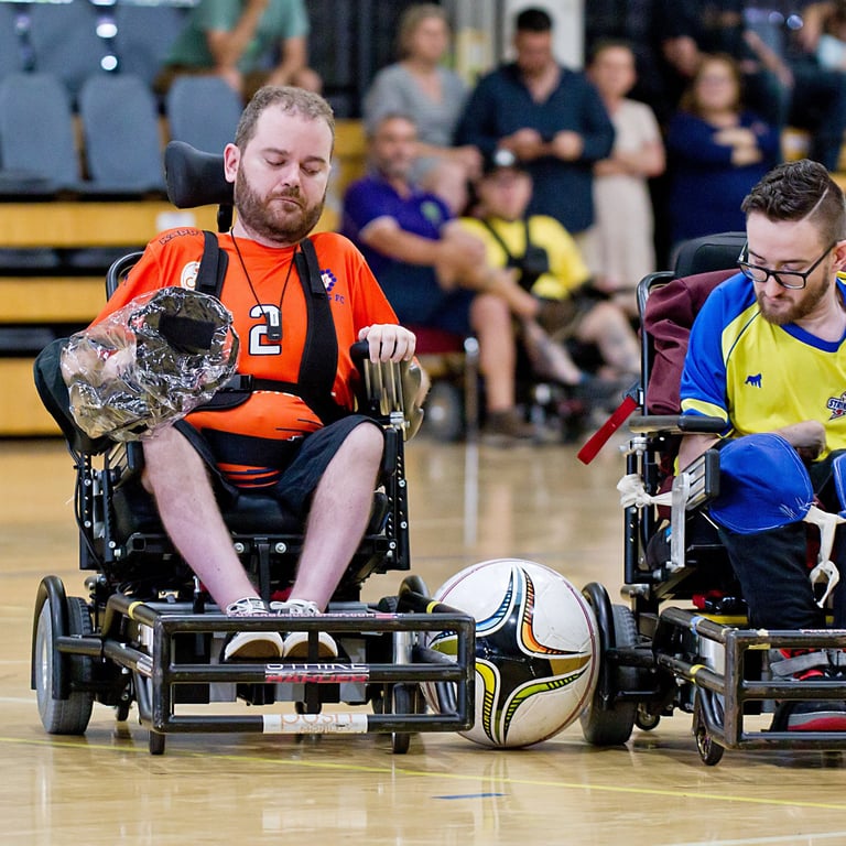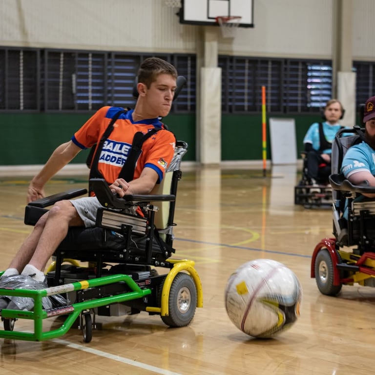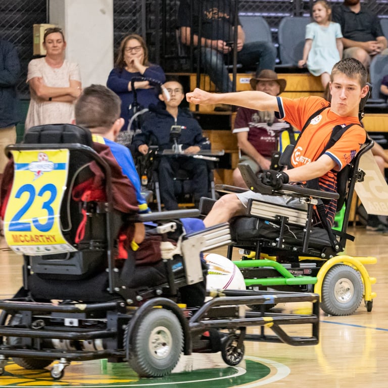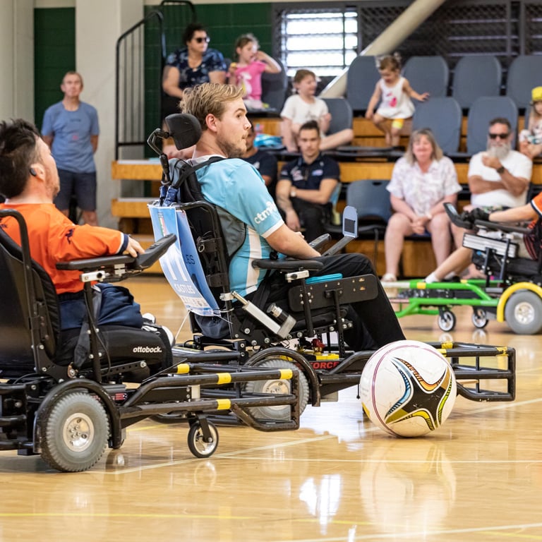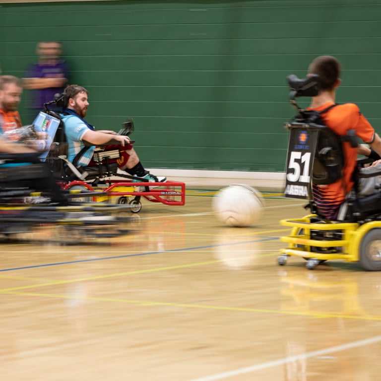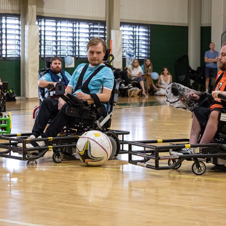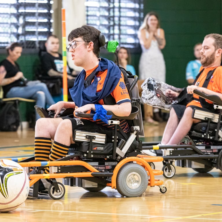 Powerchair football is a unique sport and one of the few team sports for powerchair users. We are open to all ages, all genders and all abilities. Whether you are competitive or just want to have fun in a friendly and supportive environment, we have opportunities for everyone to take part. You don’t even need to have your own sports powerchair to take part. QPFA has a fleet of loan chairs for new players, giving everyone a taste of how the sport can be play