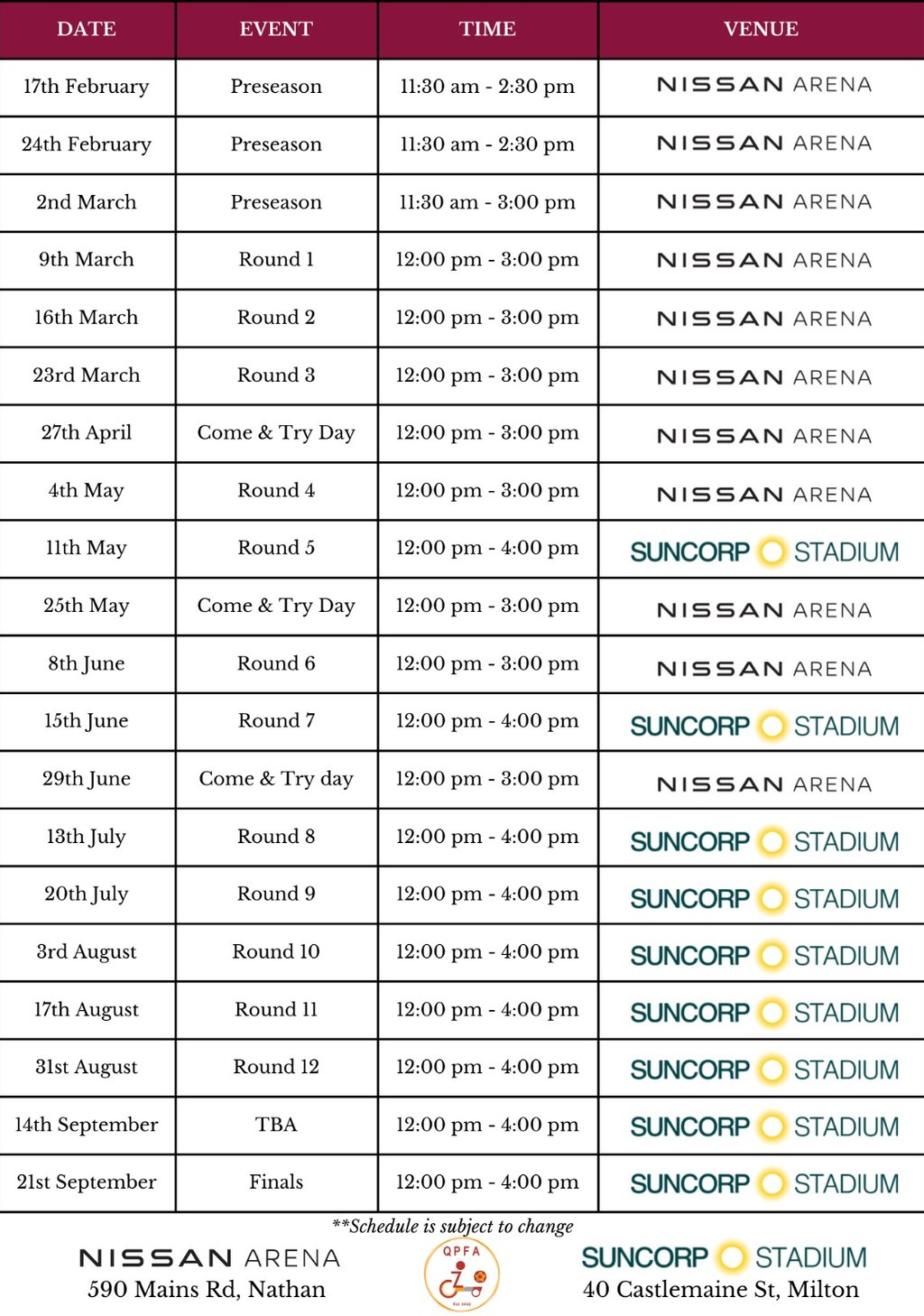 Stay up to date with all that is happening on the QPFA's Schedule.