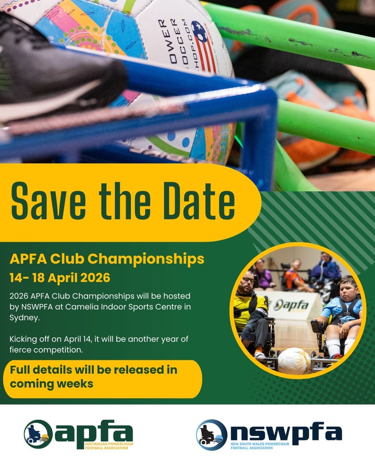 From April 14th to 18th, Australia's best powerchair football teams will converge on Parramatta, to play for the title of 2026 APFA Club Champion.
